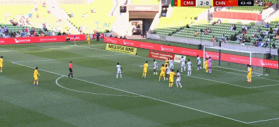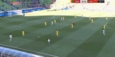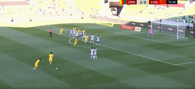 34’ 喀麦隆队的任意球配合,纳吉达的兜射滑门而过;