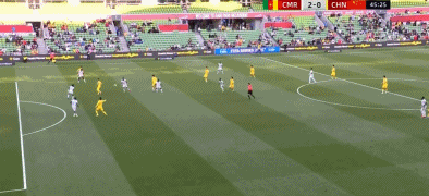 28’ 喀麦隆左路吊入禁区,中国队防守不力,阿利乌姆险些争到落点;