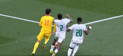 65’ 中国队右路低传,辛亚姆抢在刘洋之前将球破坏;